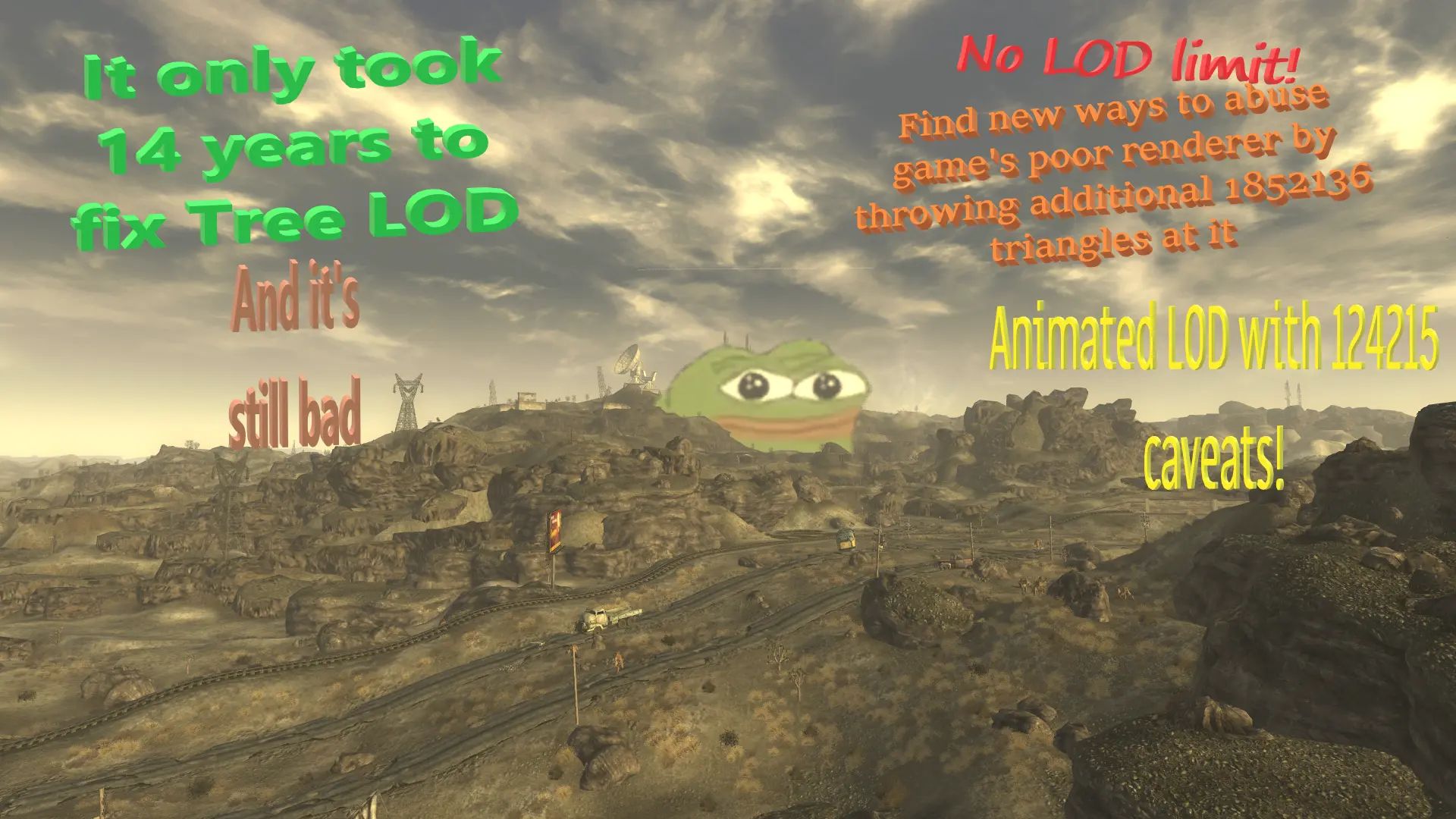 Vanilla LOD system is pretty jank like all Bethesda code, with lots of elements being hardcoded. Goal of the mod is to change that.