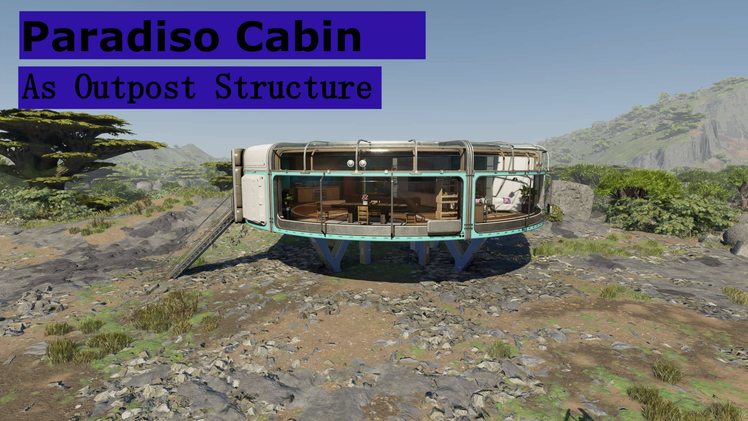 Adds my Paradiso Cabin as build able outpost structure, both available as furnished and empty!