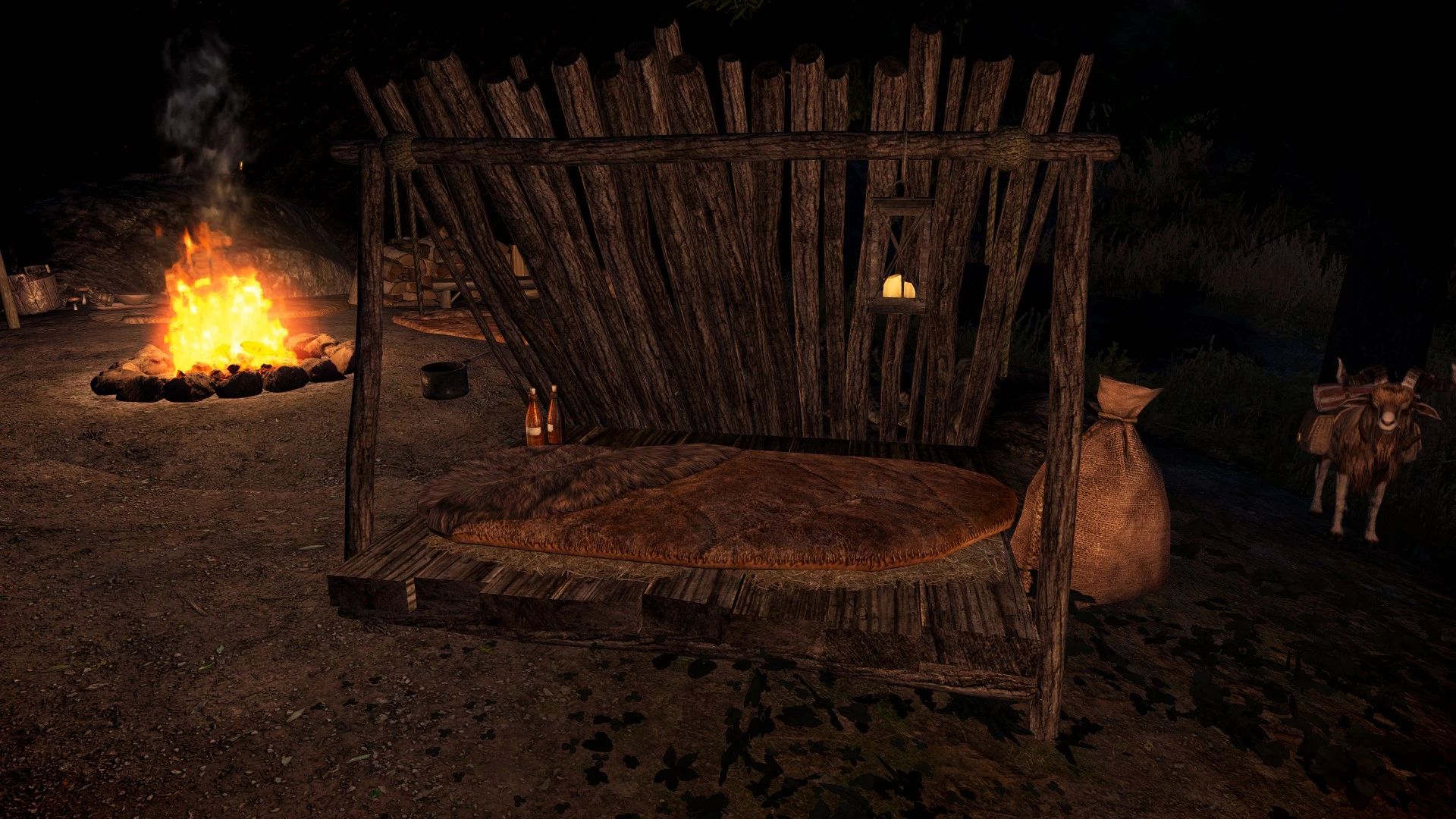 Small mod I made a couple of weeks ago and forgot to share. Just changes the campsite to use a bedroll instead of hay. Also my version that adds some bottles and a lantern on the sleeping part.