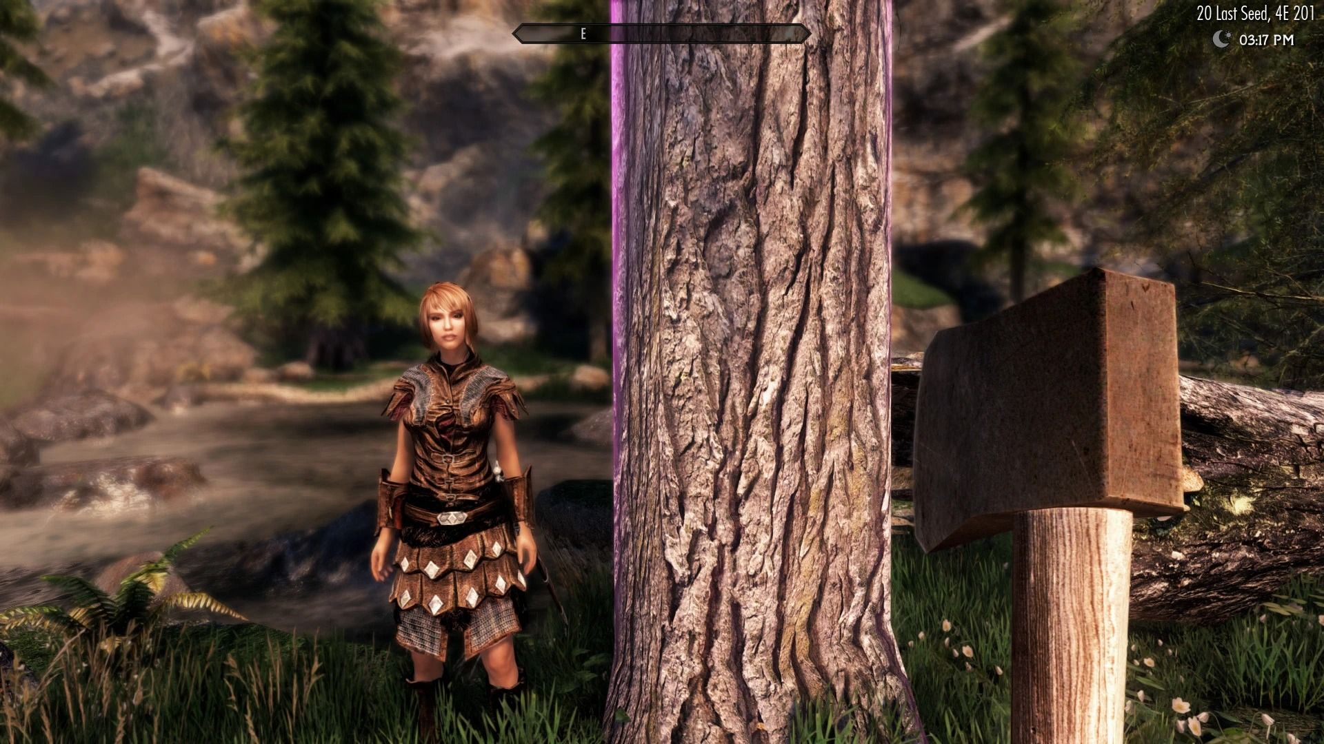 - Refrains from running scripts in your game all the time, or swapping out any objects in the game world with new references, instead choosing a method where the script only runs temporarily when you draw your axe, and doesn't add anything new in game whatsoever, so no possibility of save bloat or slowdown etc. It also does not permanently alter Skyrims landscape which is common in similar mods (This was a deal breaker for me)