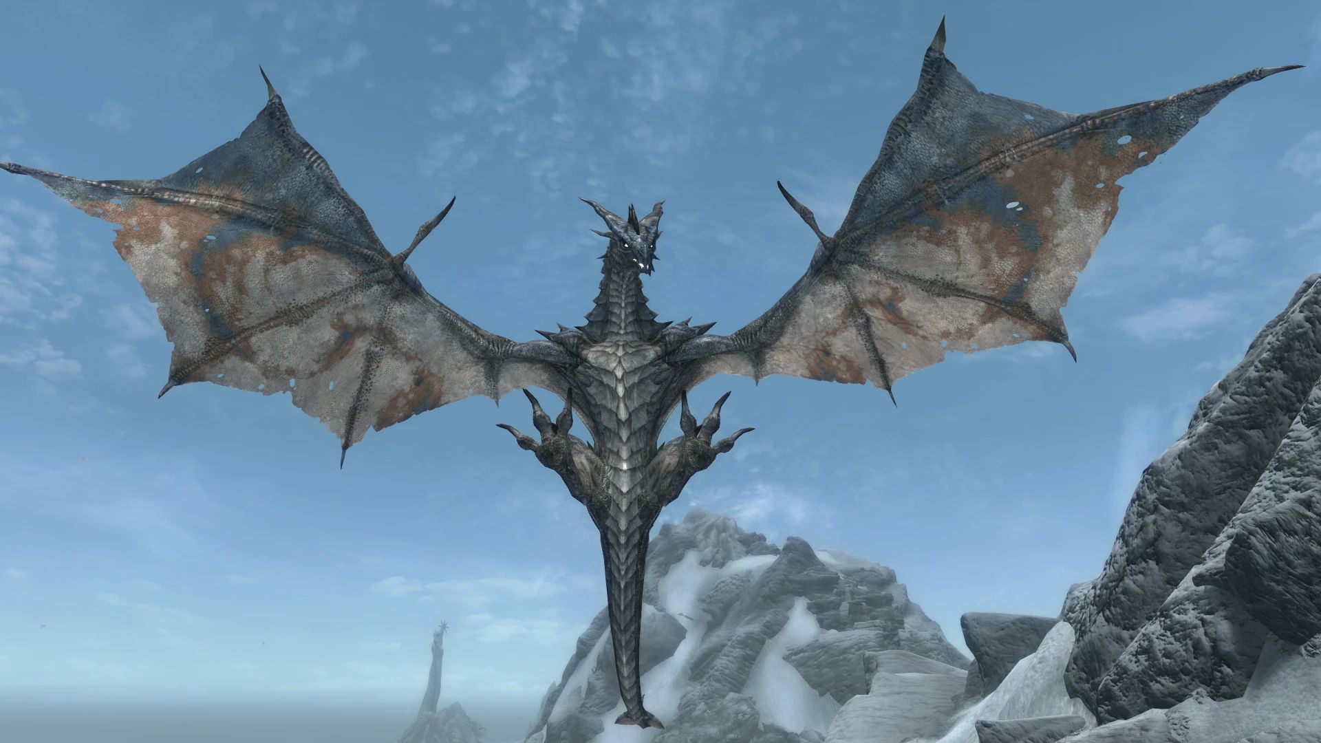 This is a new and updated version of a project that I released about a year ago, it was one of my first modding projects so I still had a lot to learn. I have now improved the mod drastically, there is now an actual quest that can be completed, nothing new is added but it makes it a lot easier to track. The ending now functions and the dragon will attack the player. I have also replaced the standard dragon skin with a more interesting one. Thanks to yousukeve for making the mesh, I have their permission to use the model. Thank you to Bellyache for making the amazing texture, their permission is granted as well. The voice lines have also been slightly edited, they no longer sound like a human speaking but more like a dragon with a deeper and grander voice.